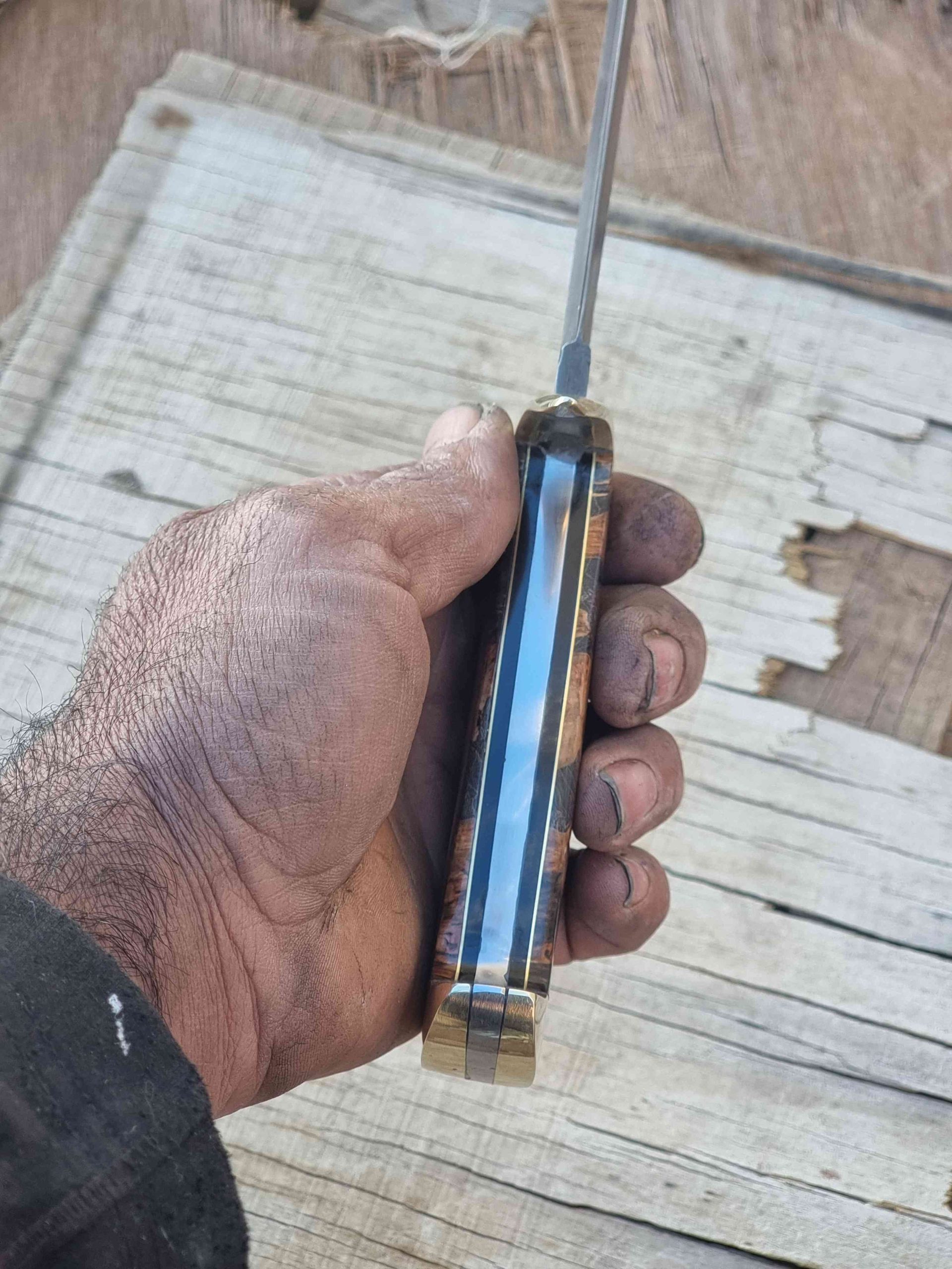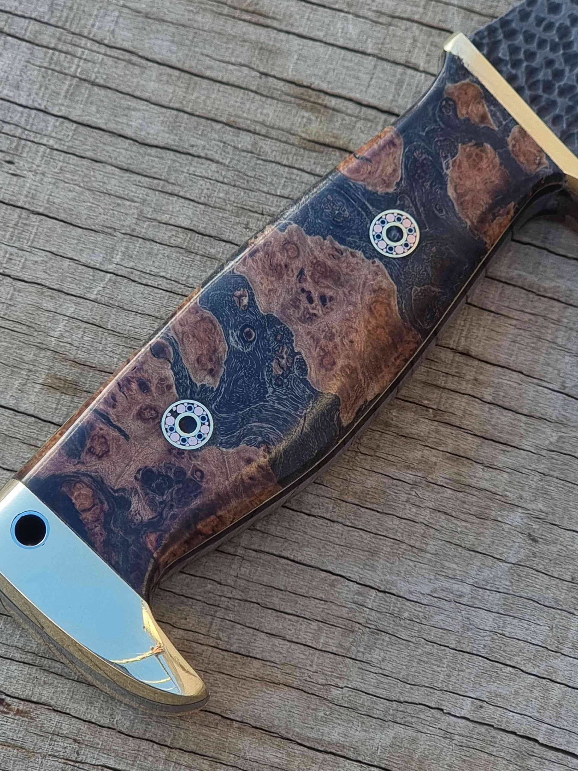 جنس دسته :ترکیب چوب جوش کیکم استابلایز شده بهمراه برنز و چوب آبنوس