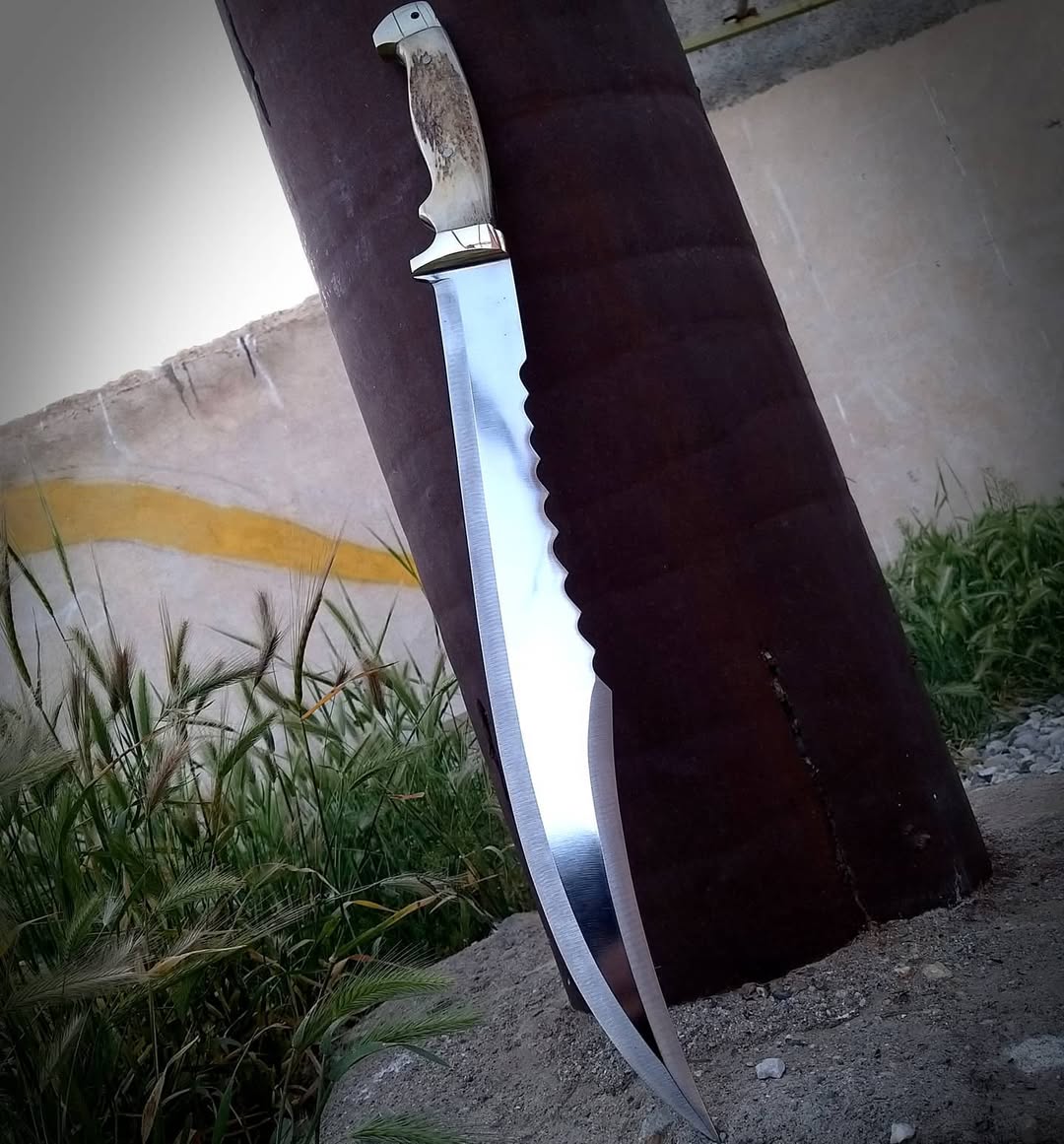 متریال تیغه : استیل فولاد440 (قابل اجرابصورت سفارشی با فولادهای 80Crv2،D2،دمشقی و سان مای)